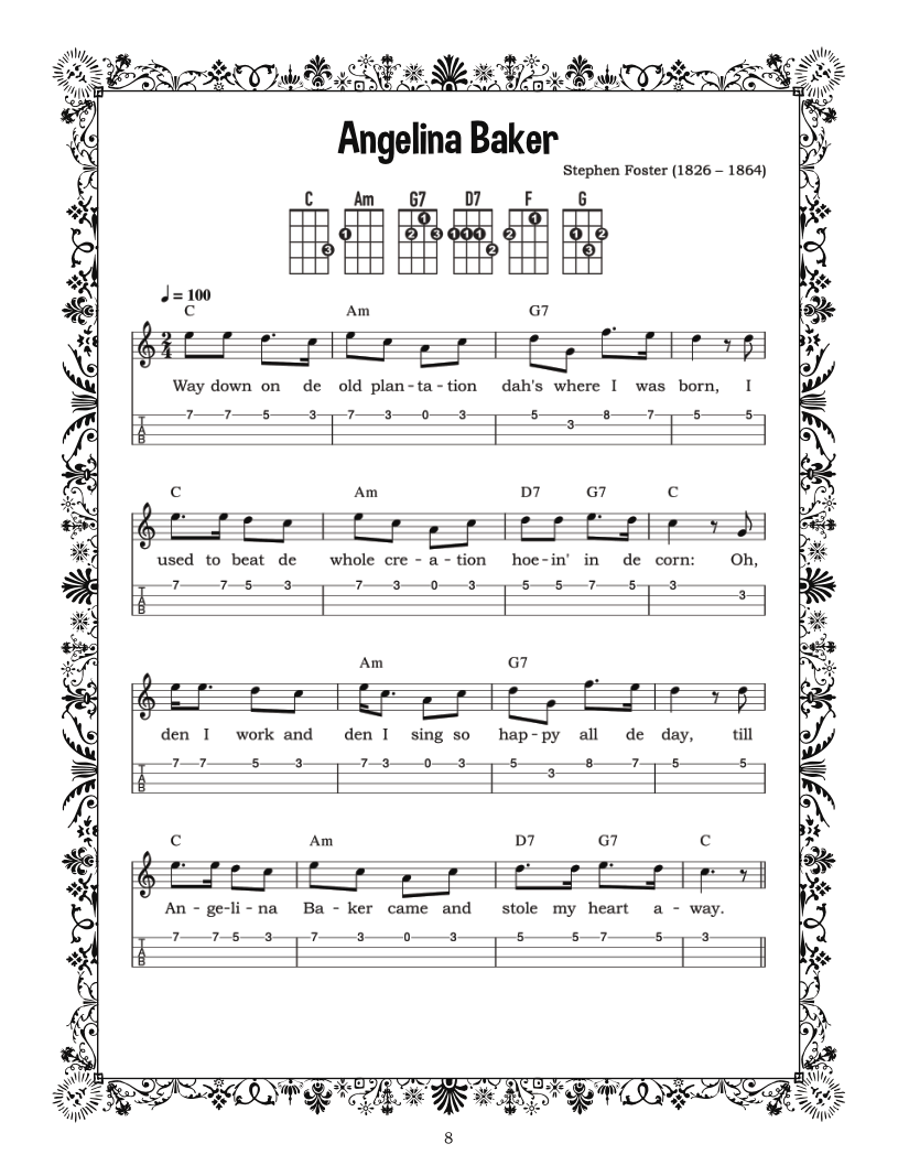 Stephen Foster - Ukulele Songbook with Tabs and Chords Vol.1